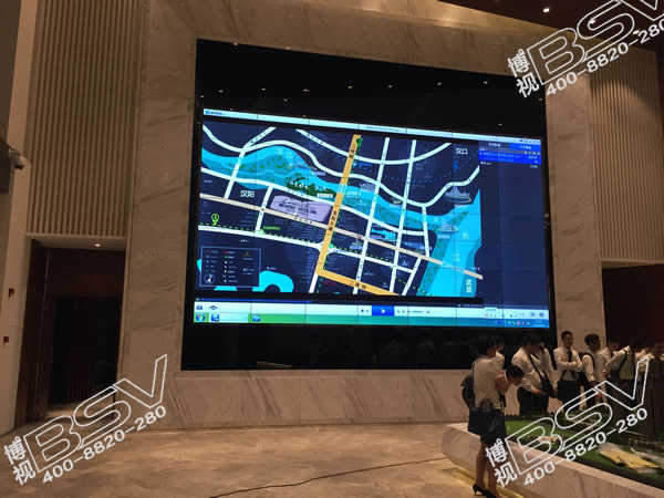 萬科售樓中心與武漢博視合作了一套大屏幕顯示系統(tǒng),該液晶拼接顯示系統(tǒng)采用46英寸超窄邊液晶拼接單元,7行7列,無縫拼接,該系統(tǒng)是以影音互動為核心的網(wǎng)絡(luò)顯示系統(tǒng),是可以將動畫、視頻、三維全景、圖像、音樂、文字等數(shù)字資源整合在一個交互系統(tǒng)中并通過大屏幕來展現(xiàn)這些信息。