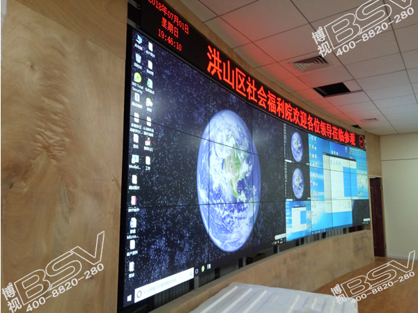 項目內容:武漢博視與該院合作了一套液晶拼接屏顯示系統(tǒng),該系統(tǒng)采用是7行3列的拼接屏,并且采用弧形拼接方式,46寸的液晶拼接屏,該拼接屏顯示單元為三星原廠提供的面板,采用弧形拼接的液晶大屏,集新一代的液晶顯示技術和純硬件高速實時拼接控制技術于一身,所有的輸入信號可以自由的顯示在顯示墻窗口中,全面支持圖像的跨屏、漫游、畫中畫、疊加、縮放等先進顯示功能??刂破鳛槠唇悠亮可矶ㄗ觯瑢C專用,能很大限度的發(fā)揮顯示單元的效能。為該福利院打造信息化管理云平臺展示系統(tǒng),作為全國超前信息化、標準化試點單位,社會福利院已經(jīng)實現(xiàn)了信息化、網(wǎng)絡化管理全覆蓋,提升了管理效率,也保障了服務的優(yōu)質與便捷。